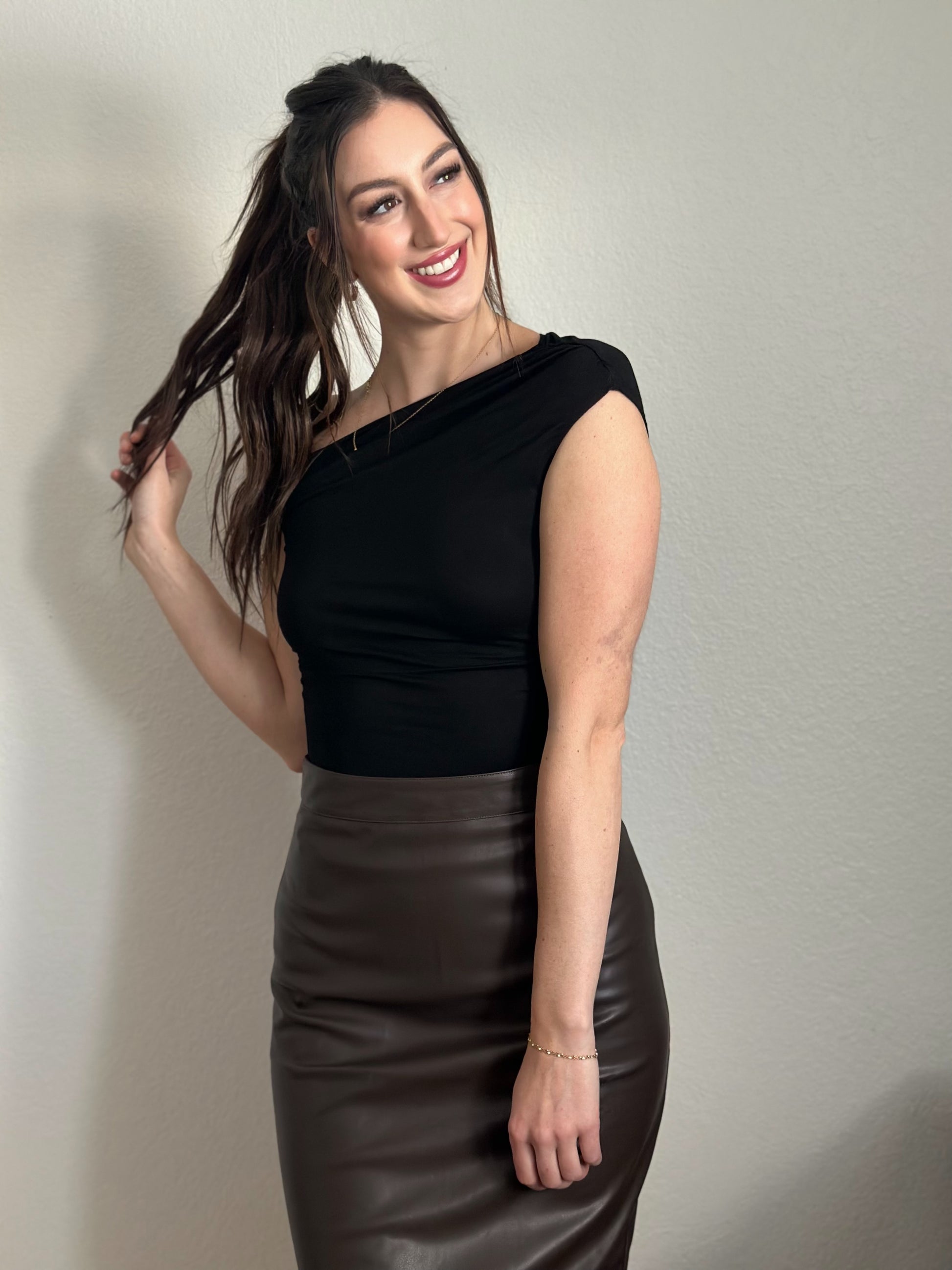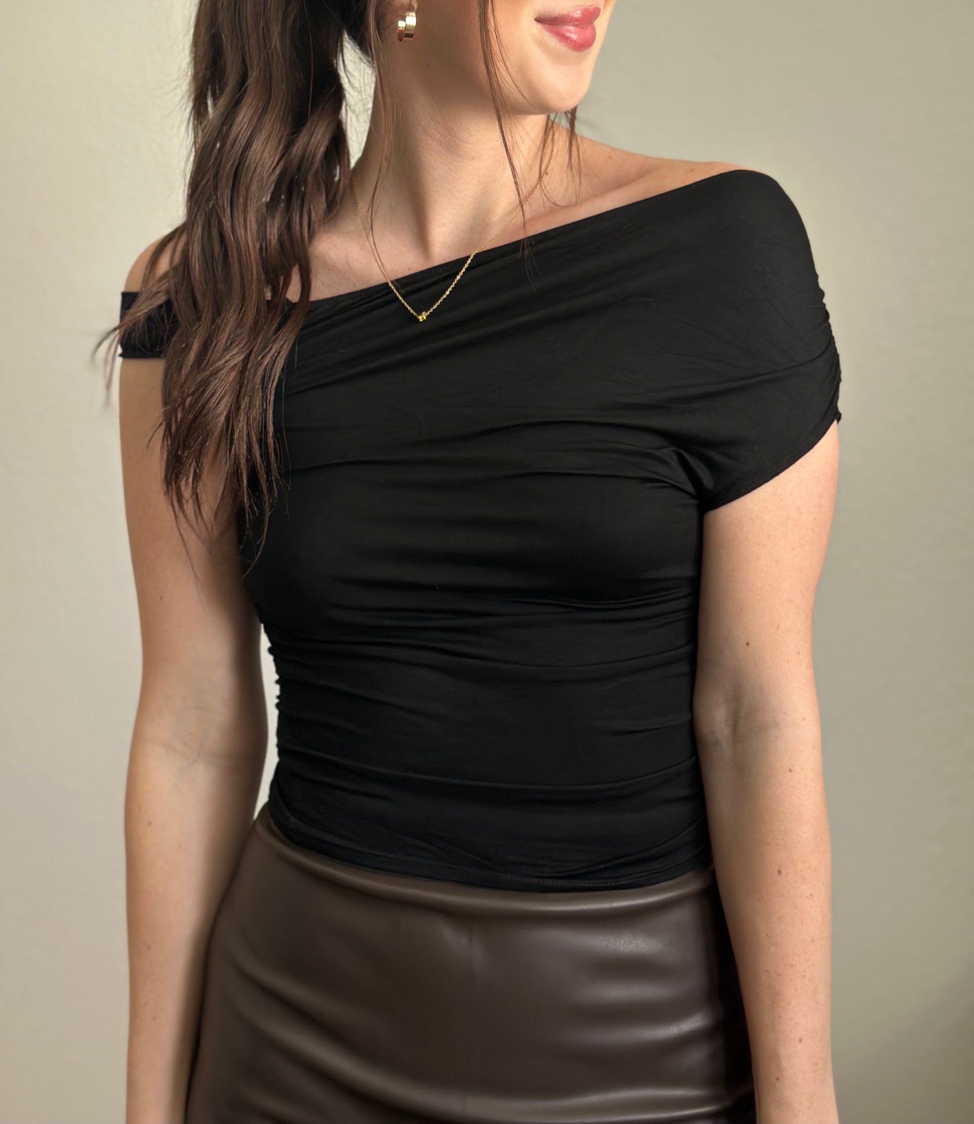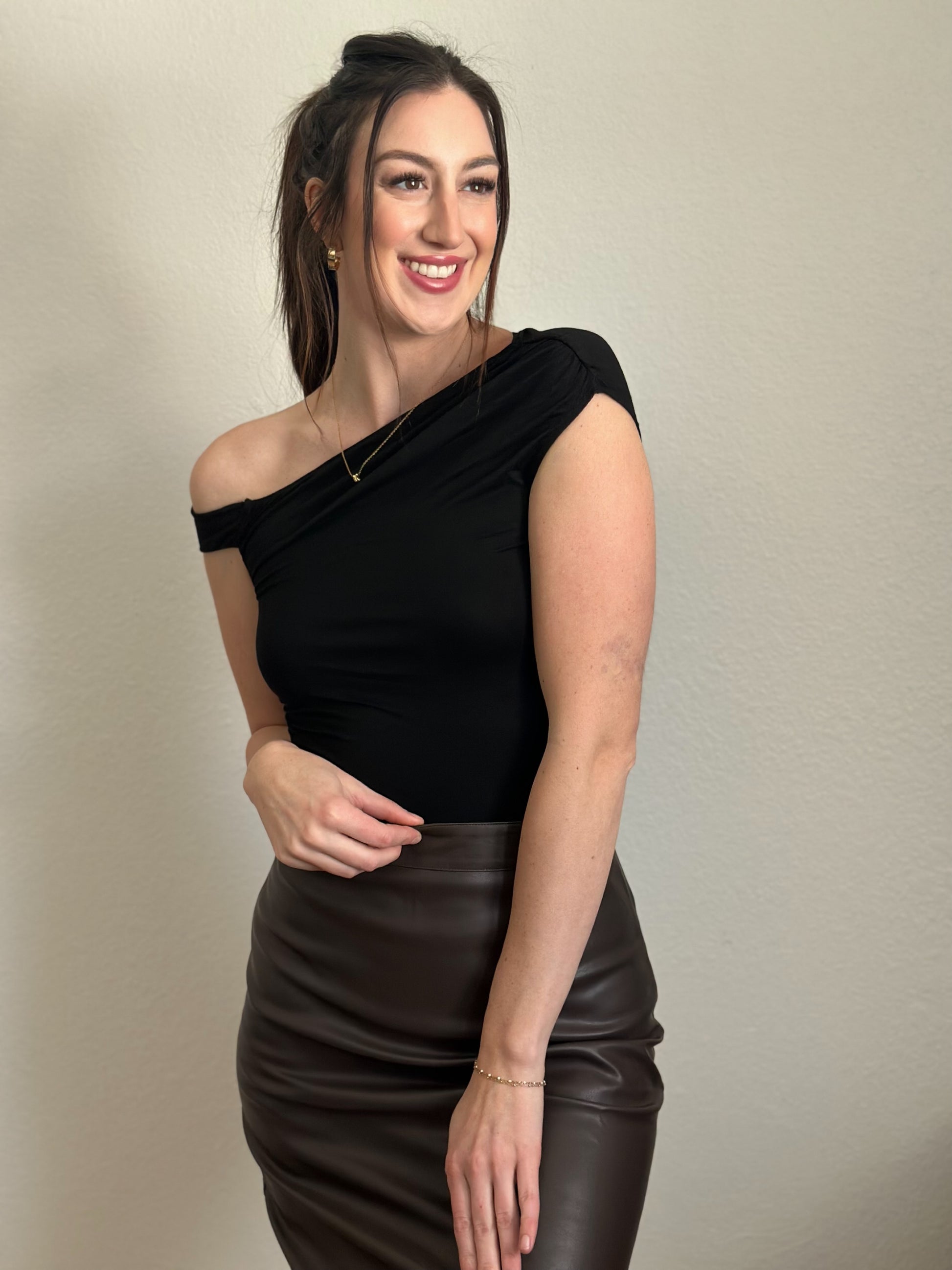 The Liya Solid One-Shoulder Top is the perfect addition to any closet. Its trendy yet timeless one-shoulder design makes it versatile for both dressy and casual occasions. Made with high-quality materials, this top is a must-have for the upcoming spring and summer season.